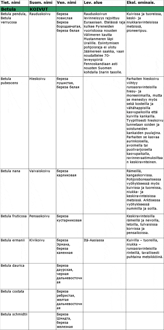 Puulajit >> Venäjän puulajien lajitaulukko >>