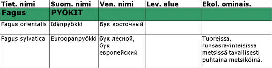 Puulajit >> Venäjän puulajien lajitaulukko >>