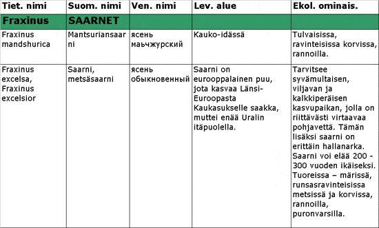 Puulajit >> Venäjän puulajien lajitaulukko >>