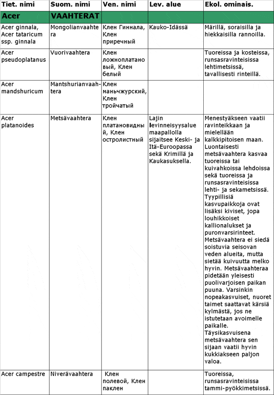 Puulajit >> Venäjän puulajien lajitaulukko >>