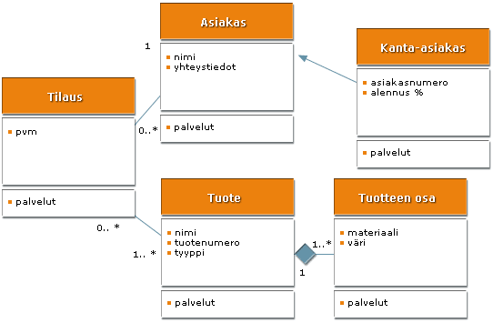 yhteydet ja rakenteet kuten kooste- ja periytymisrakenne: