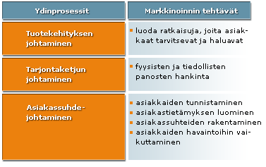 markkinointi vastaa kolmesta ydinliiketoimintaprosessista: