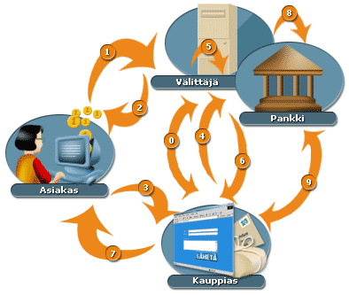 3) Asiakas ostaa sähköisen tuotteen ja lompakko-ohjelma