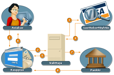 talletus kauppiaan palvelimelle. Vaikka menetelmään liittyykin